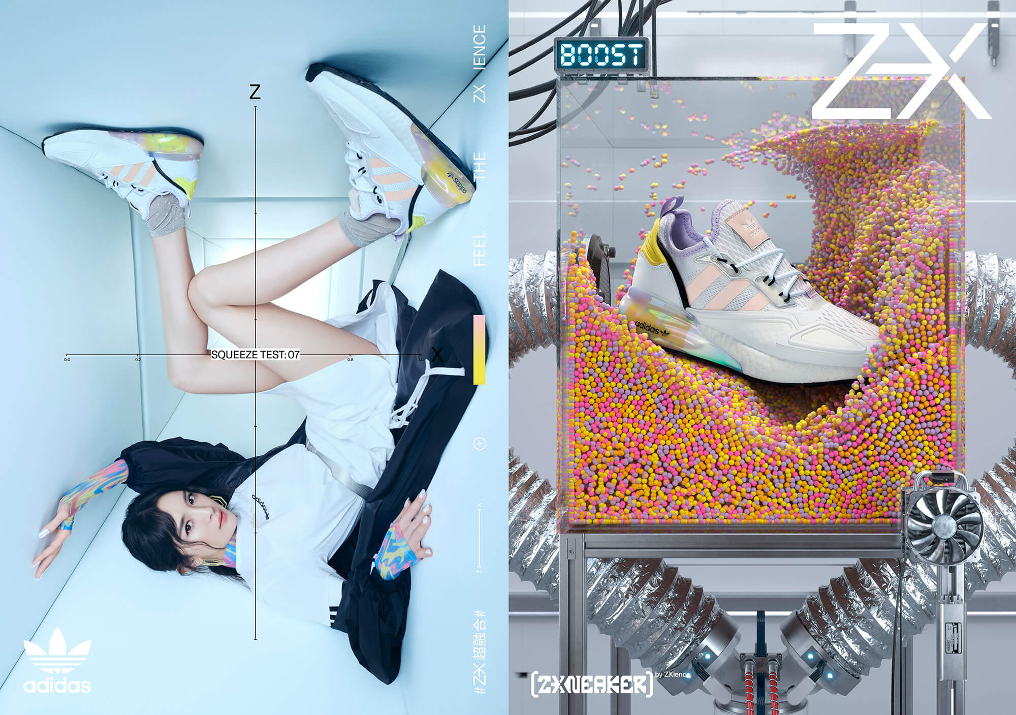 Visuals for the new Adidas XZ sneakers featuring their advanced properties, like squishiness, comfort, durability, lightness, ergonomic, etc. Official campaign for Adidas Asia.