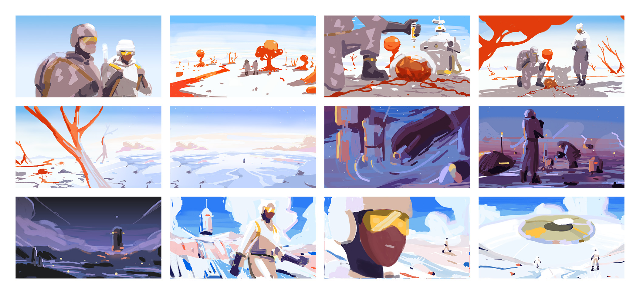 In this desolate world, bathed in ethereal whitish tones and marked by an evolution from arid terrains to more humid landscapes, the scientists advance in their mission with profound dedication. Methodically examining soil samples, analysing parasitic organisms, collecting water samples, and tirelessly exploring the mysteries under the vast open sky throughout the course of a day, each frame becomes a spectacle from another world.