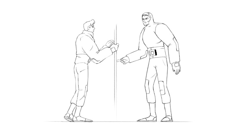 Overlay’s short story brought us a powerful creative rush, and we rapidly imagined an immense visual universe for it. Our biggest challenge was to shorten the original story and suit it into a three-minute film. We felt compelled to choose the most relevant information and discard those layers of content that we knew we couldn’t properly develop. Due to this laborious filtering process, we found necessary to optimize the work-flow, so we settled on cel animation, yet combining it with solid 3D backgrounds that would bear a wider sense of space and perspective. The spirit of the short film (read: secret agent action movie) got influences from the sci-fi anime movie classics, hence the retro concept style. The core of the whole creative process was to hit the right mood for the plot twist: cut off the “action movie” type of feeling and turn it into an emotional story.