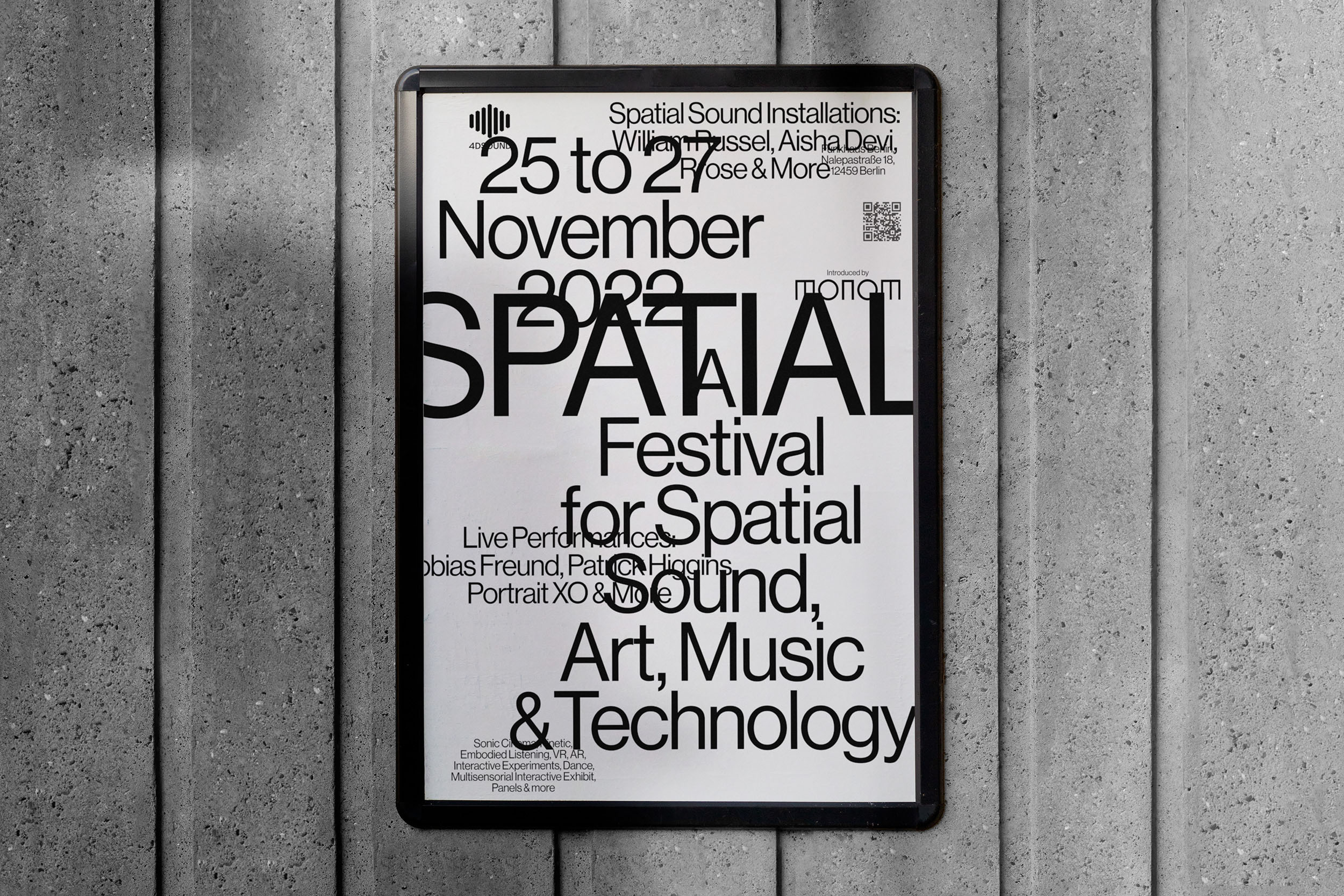 Pràctica created the visual identity for Spatial, an innovative festival powered by Monom Studios and located in Berlin that offers a unique experience in spatial sound and immersive technologies. All the motion graphics for the Pràctica identity were animated by Gerard Mallandrich.